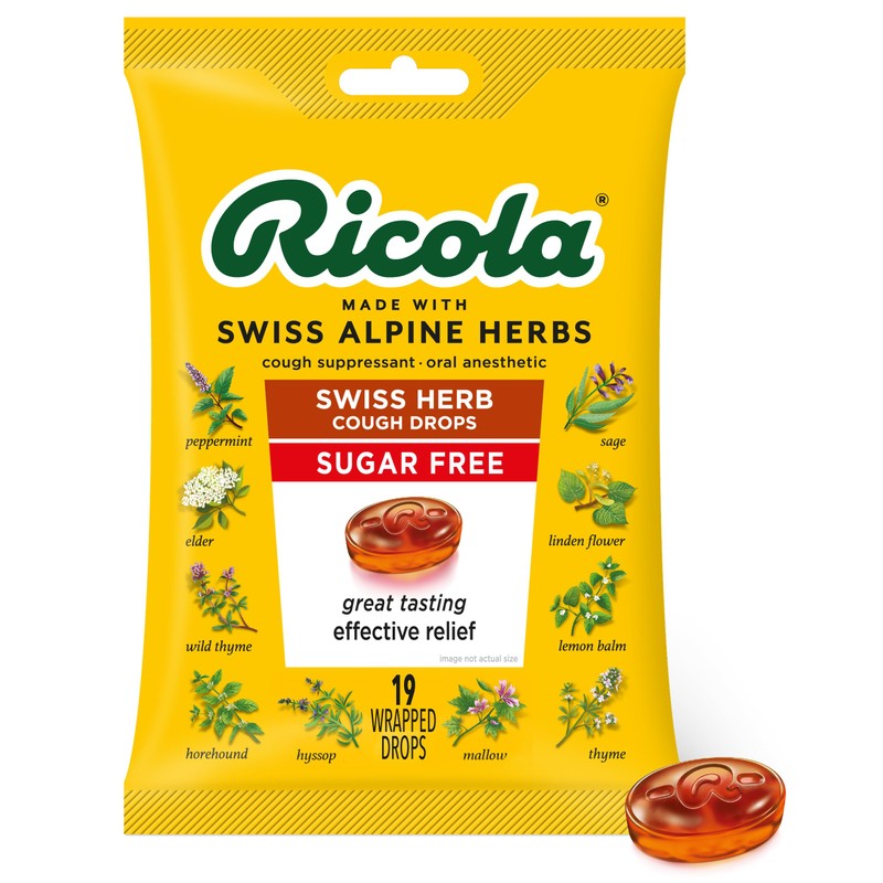 - Great tasting sugar-free cough drops made with Ricola's signature herbal blend temporarily calm coughs and relieve sore, dry, hoarse, or itchy allergy throats