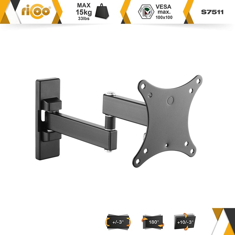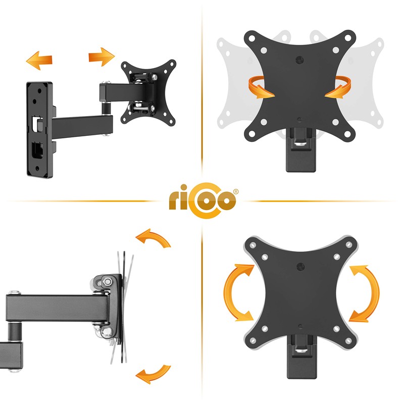RICOO TV Bracket Tilt Swivel S7511 for 13-27 Inch for LED LCD OLED Curved and Flatscreens Monitor Wall Mount Universal for VESA 75x75 100x100