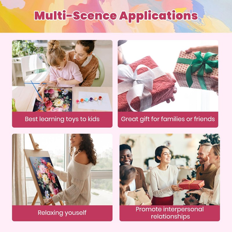 Painting by numbers can also be given as gifts to relatives and friends, using painting to express your blessings to relatives and friends. Just hang it on the wall and it will make your room and your world more beautiful.