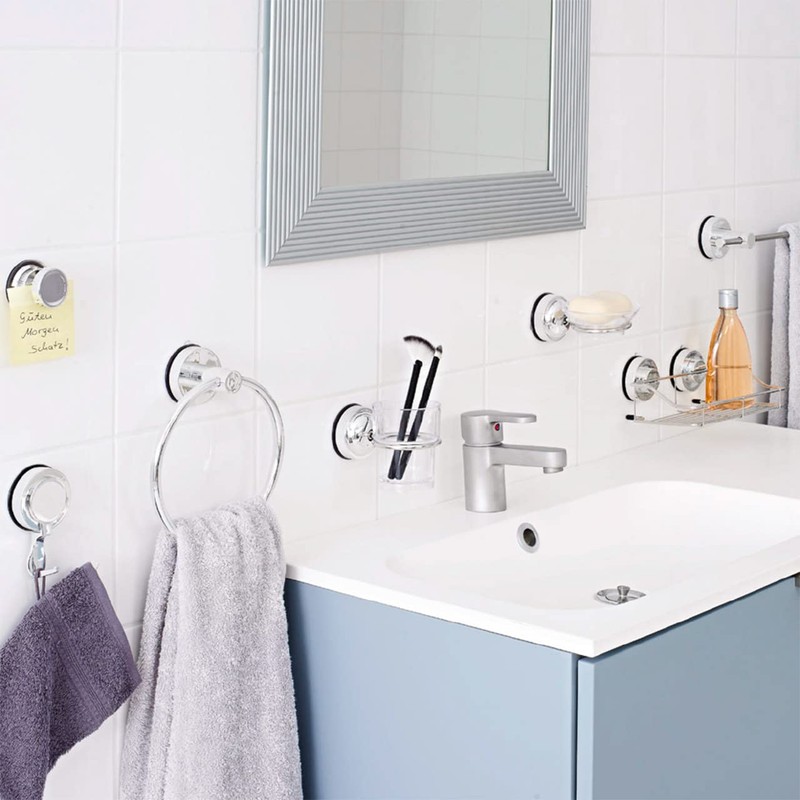 - サクションシリーズには、タンブラーホルダーだけでなくシャワートレイやミラー、シャワーレール、ソープディッシュ、歯ブラシホルダー、ヘアドライヤーホルダー等々、たくさんの種類があります。 サクションシリーズで揃えれば、必要な場所に必要な収納を設置でき、高級感のあるホテルライクなバスルームを作ることができます。