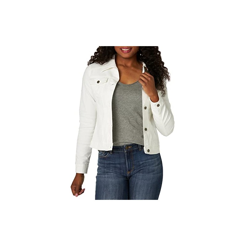 - CLASSIC FIT. Constructed with comfort in mind, this women's denim jacket has a classic fit and offers give where you need it while still providing a classic straight fit.