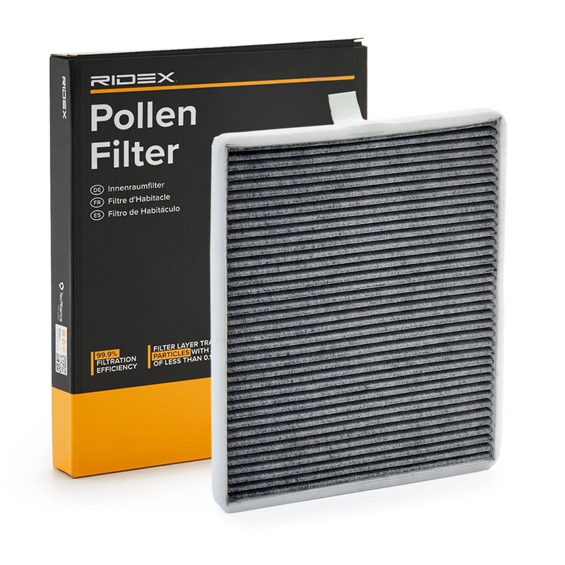 - Thanks to the multi-layer structure and electrostatic charge of the microfibre, the RIDEX cabin air filter retains up to 99% of pollen, mould and other particles smaller than 0.1 microns.