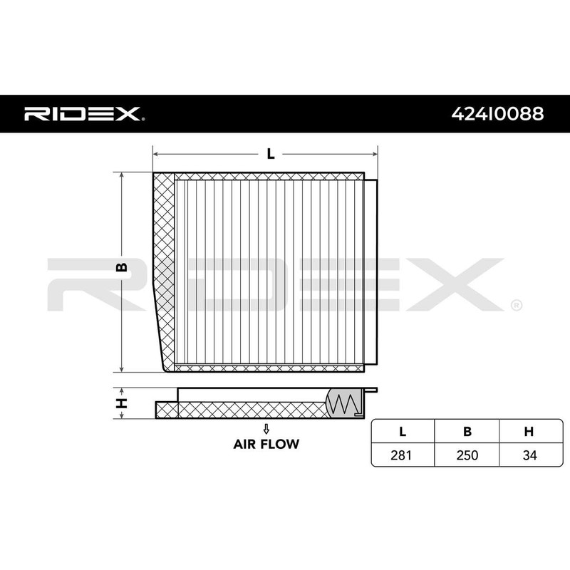 RIDEX Cabin Air Filter 424I0088 V70 II (285) XC90 I (275) S60 I (384) 281 mm 250 mm