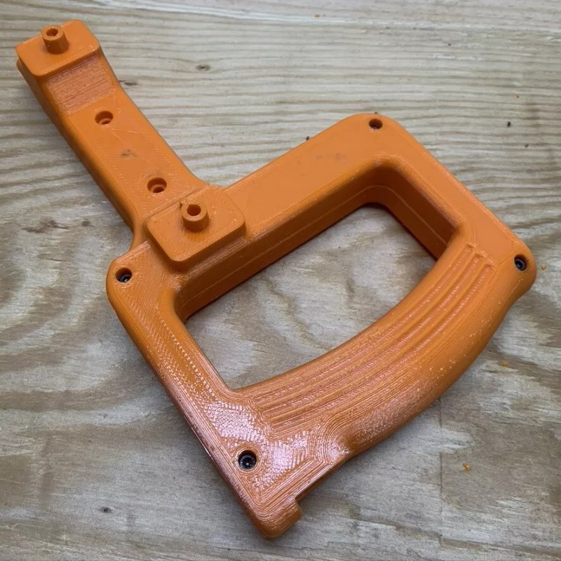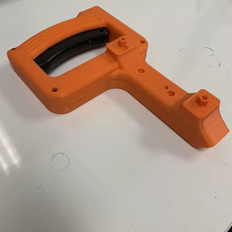 3d printing is an additive manufacturing technology that in this case uses PETG filament (stronger and higher degree of durability and resistance to outside conditions) but instead of injection molding, 3d printing offers a stronger internal structure since this handle specifically is made up of over 400 layers of alternating infilled patterns made of honeycomb shape.