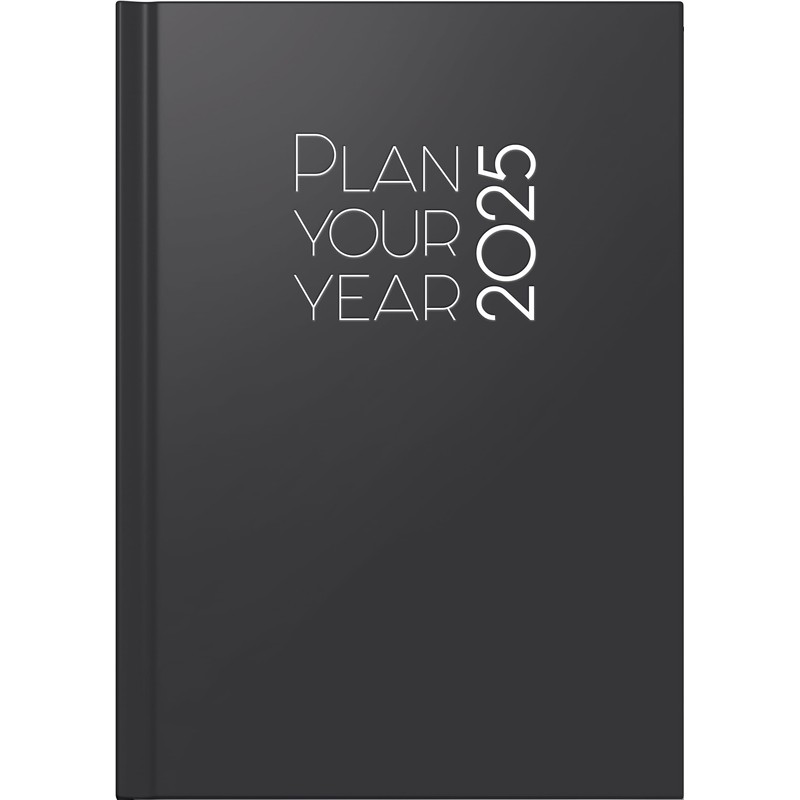 rido/idé Book Calendar Model Executive Planner (2025) "Plan Your Year", 1 Page = 1 Day, A5, 400 Pages, Faux Leather Cover, Black