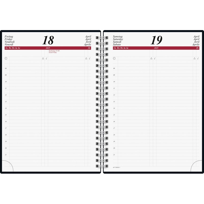 rido/idé Book Calendar Model Timing 1 (2025), 1 Page = 1 Day, A5, 464 Pages, Foam Film Cover, Black