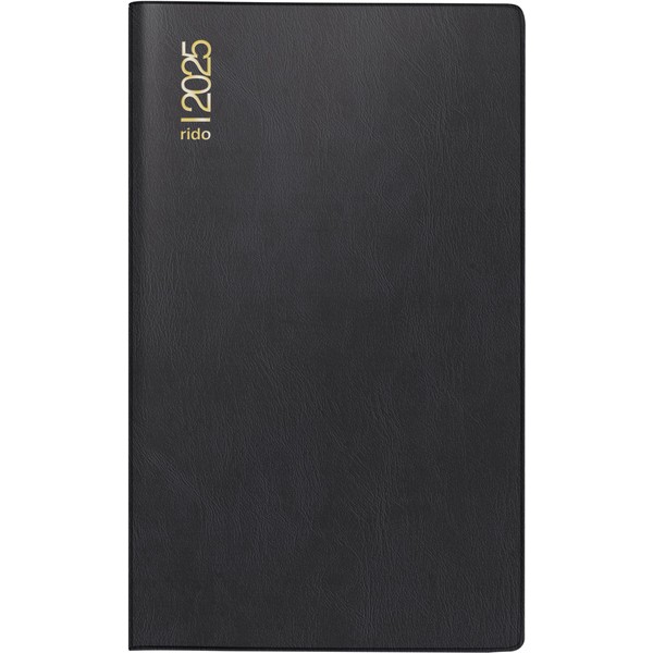 rido/idé Pocket Diary Model Plain Planner (2025), 2 Pages = 1 Month, A6, 32 Pages, Plastic Cover, Black