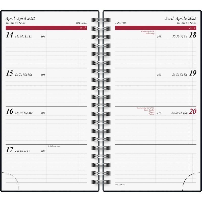 rido/idé Pocket Diary Model Timing 2 (2025), 2 Pages = 1 Week, A6, 176 Pages, Balacron Cover, Black