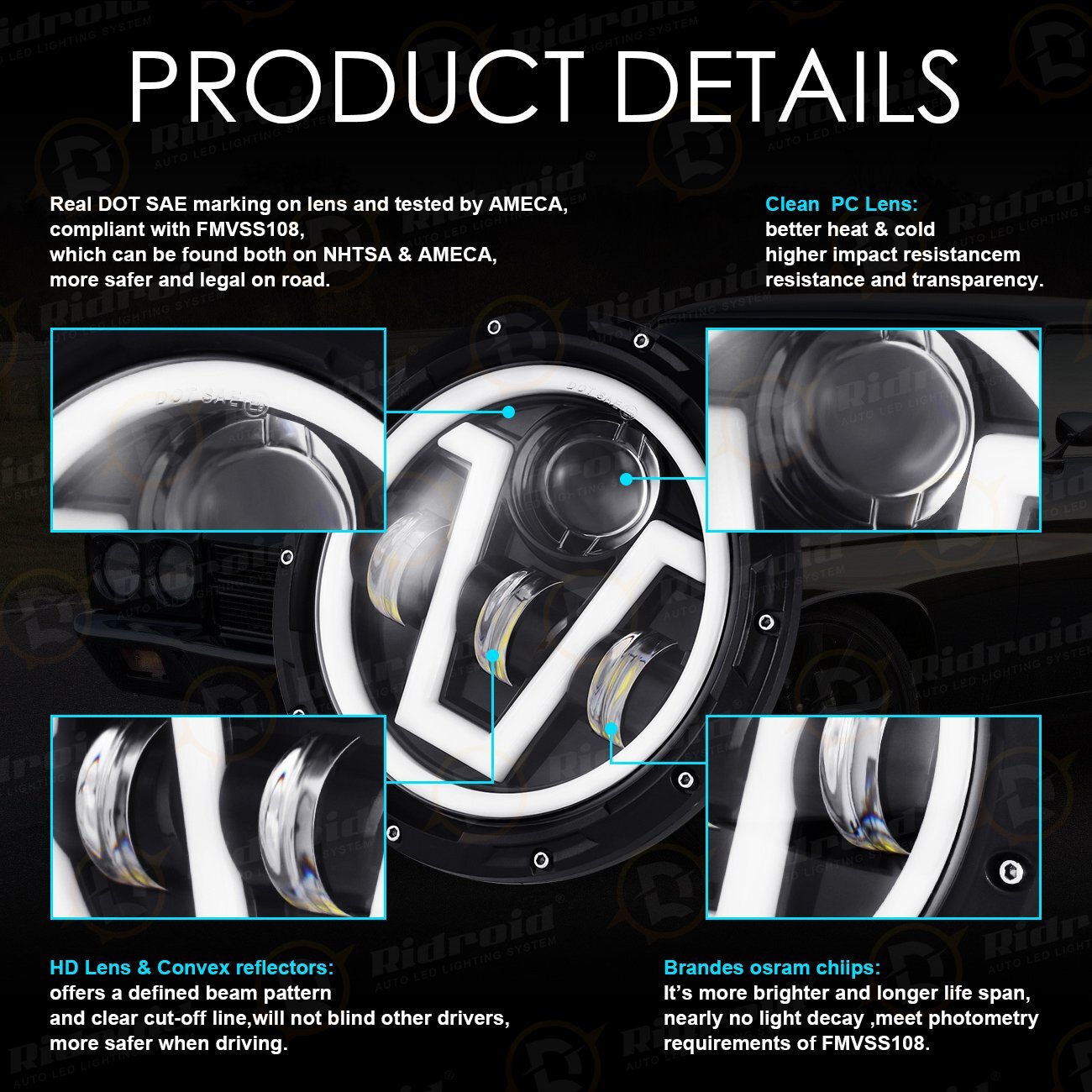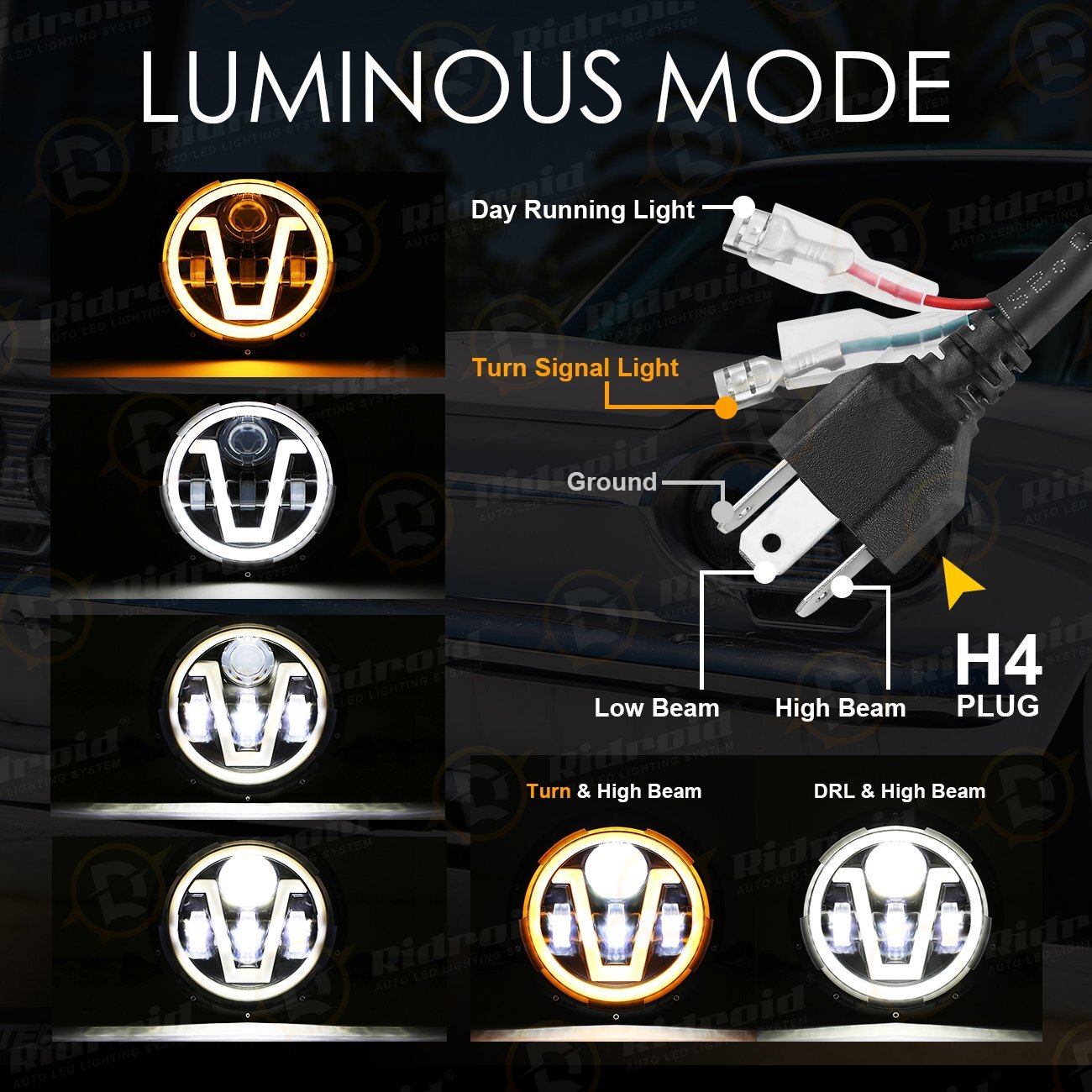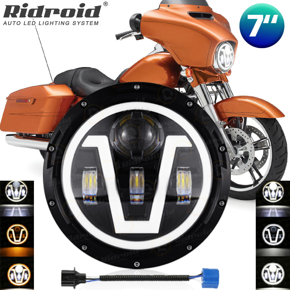 RIDROID 7" inch LED Headlight Projector with Turn Signal for Harley-Davidson Motorcycle