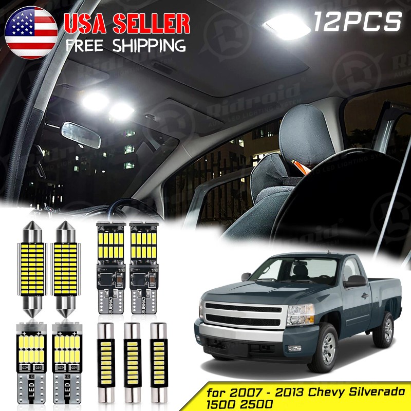 RIDROID White LED Lights Interior Package kit for 2007 - 2013 Chevy Silverado 1500 2500