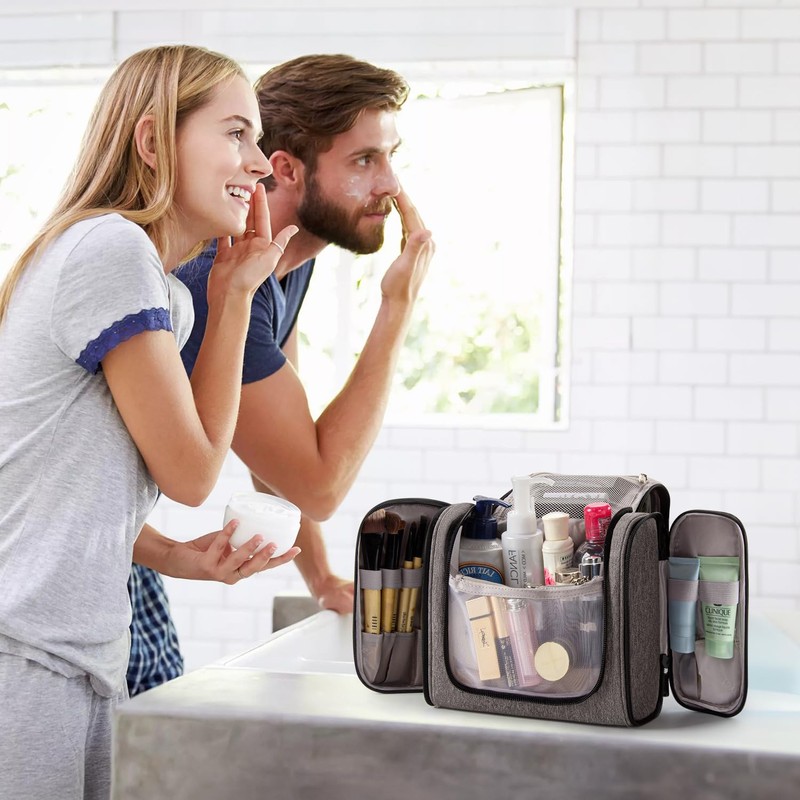 • The large capacity toiletry bag features an external carry handle for easy pull out and carry, a built-in hook for hanging on towel rails and other easily accessible places, and multiple organized compartments in the open pockets on both sides, all stored items are neatly arranged and visible at a glance.