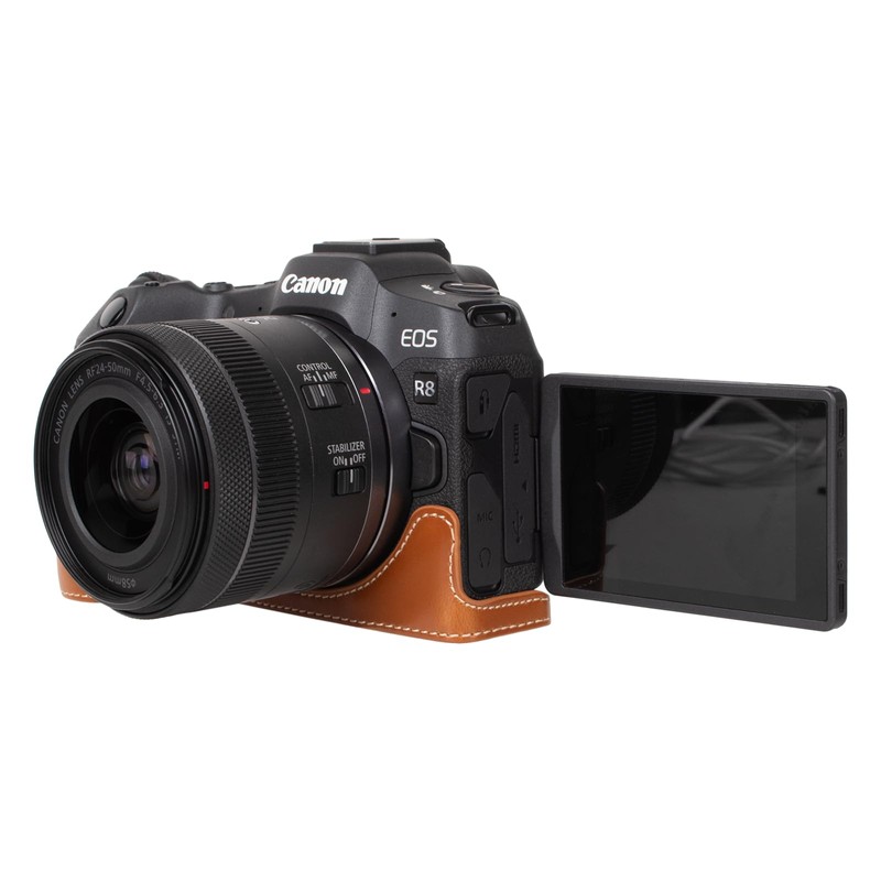 - PERFECT FIT - Custom designed for canon EOS R8 Mirrorless Camera; Use a real canon EOSR8 camera as the model, the EOSR8 half case fits the EOS R8 camera perfectly and will not affect the use of microphone, earphone, tripod and other external EOSR8 accessories