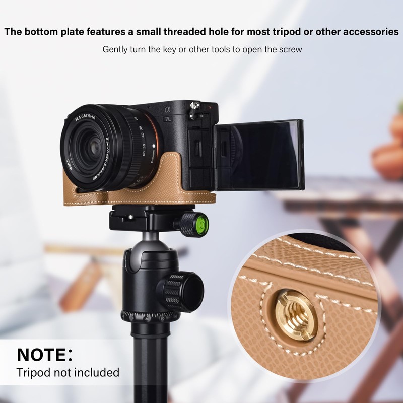- STYLISH DESIGN - The timeless vintage style, combined with lightweight and durable materials, makes this half case perfect for travel and outdoor use. Whether you're a beginner or an experienced photographer, you'll want this lightweight PU leather A7C II half case by your side.