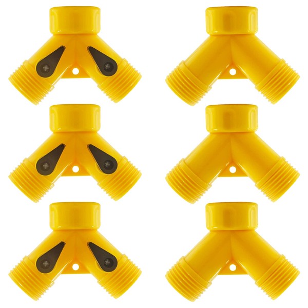 Rierdge 6 Pcs 2 Way Hose Adapter Y Valve Garden Hose Connector Non Rust Spigot Faucet Adapter, 3/4 Garden Hose Y Connectors Plastic Hose Splitter with Faucet Watering Shut Off Valves (Yellow)