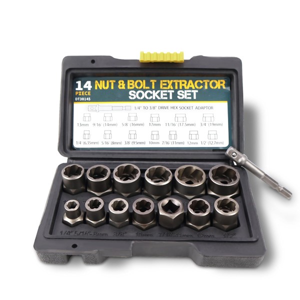 - Fully equipped: 14-piece nut remover set includes 1/4 inch (6.35 mm), 5/16 inch (8 mm), 3/8 inch (9.5 mm), 10 mm, 7/16 inch (11 mm), 12 mm, 1/2 inch (12.7 mm), 13 mm, 9/16 inch (14 mm), 5/8 inch (16 mm), 17 mm, 11/2 inch. 16"(17 .5 mm), 3/4 inch (19 mm), including 1 hex adapter and tool box for most of your repairs.