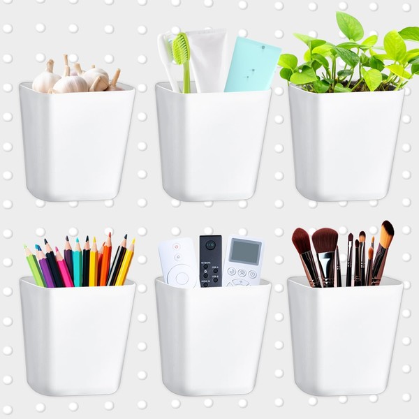 Rierousy 6 Pieces Pegboard Cups with Hooks, Square Storage Container Made of Pegboard Accessories, Pegboard Wall Organiser for Office and Home