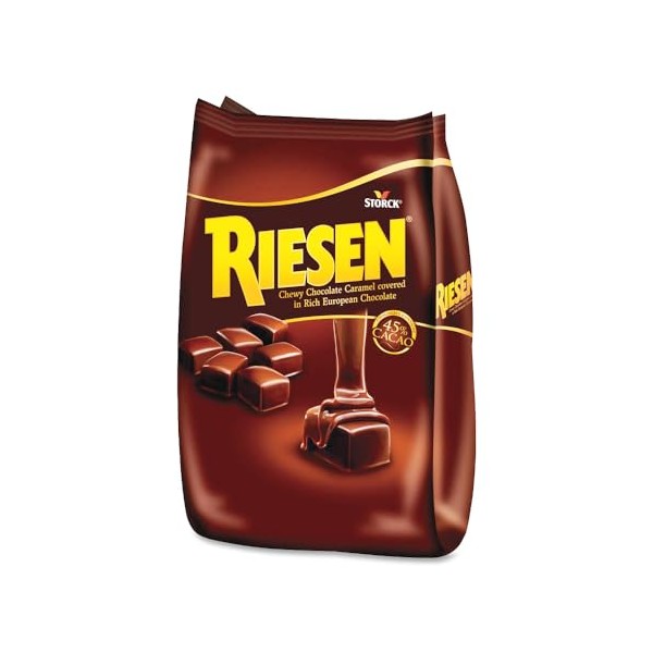 Chewy chocolate caramels are covered in indulgently, rich European chocolate. Each piece of candy is individually wrapped. Riesen Chocolate Caramels with 45 percent cacao offer an elegant treat for the breakroom or reception area.