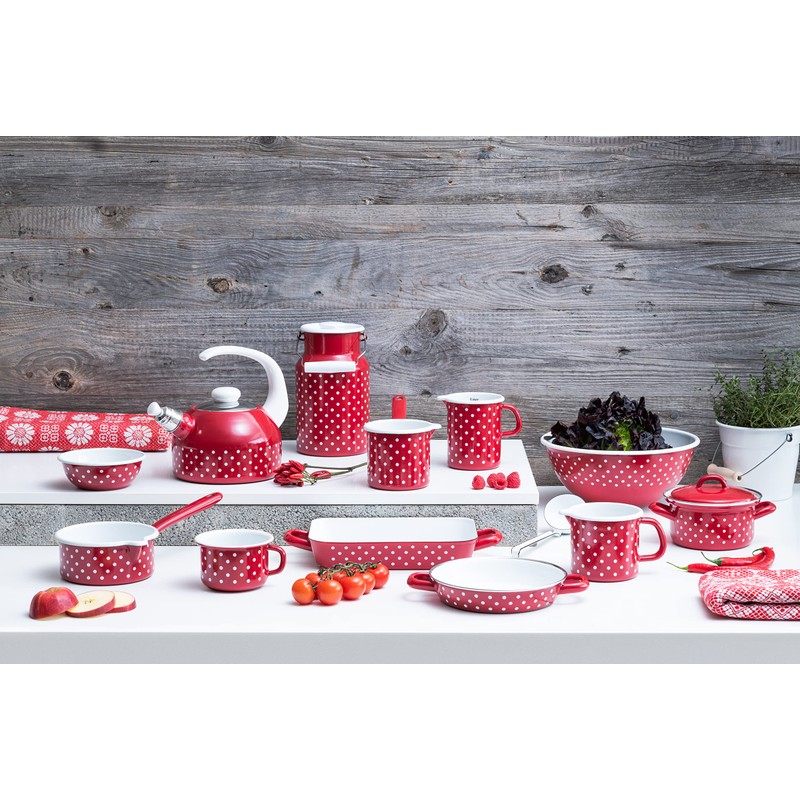 Riess, COUNTRY 0305-077 Kitchen Bowl 18, Red Dots, Diameter 18 cm, Height 6.6 cm, Capacity 1.0 Litres, Enamel, Red/White, Induction