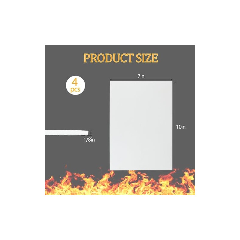 - 4 Pcs High Temperature Gasket Paper,DIY ceramic fiber insulation wood stove gasket for Pellet Stove, Kiln, Boiler, Forge, RV Furnace Gaskets 10" x 7"x1/8"Thick