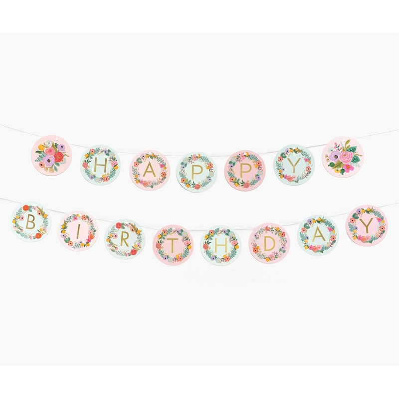 Rifle Paper Co. Garden Party Letter Garland, 4.92" L, 4.92" D, 72 Alphabetic Tiles, 8 Floral Tiles, Customize Celebratory Messages, Includes 5 Yards of Ribbon to Hang