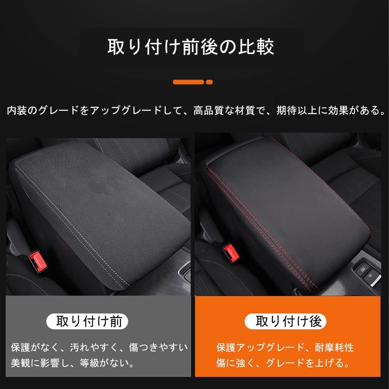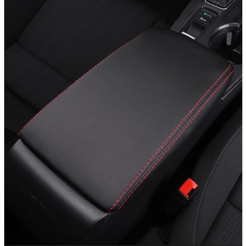 Rifoda New Honda Civic 11th Generation Armrest Cover Leather Interior Custom Parts Scratch Resistant Dress Up (Black Leather With Red Stitching)