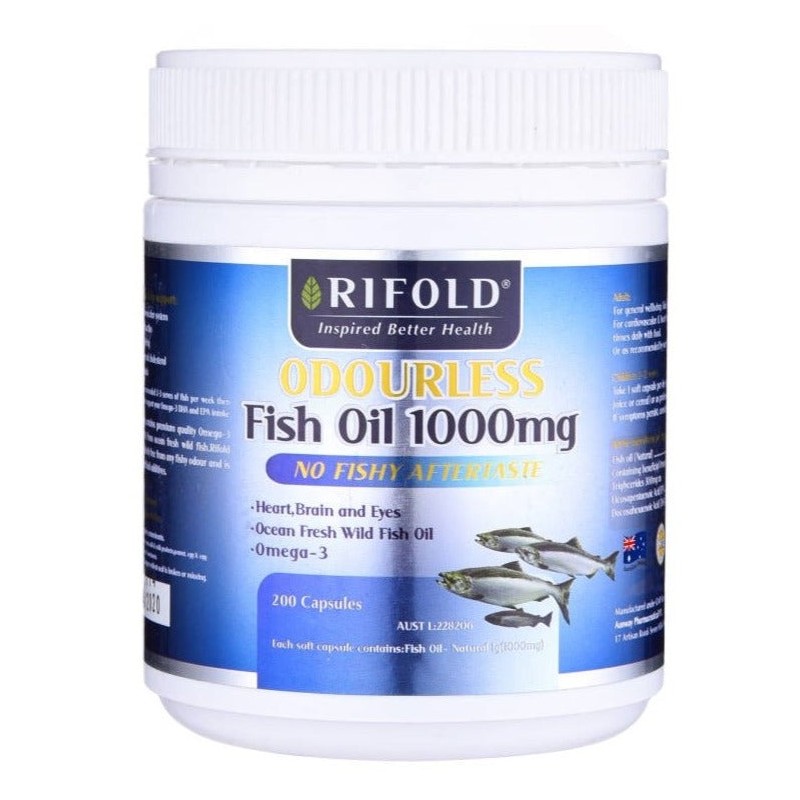 Rifold Odourless Fish Oil 1000mg is a natural source of Omega 3 essential fatty acids, with an odourless formula to reduce fishy aftertaste and reflux. Omega 3 is important for the maintenance of general health and well-being and heart, brain, and joint health.
