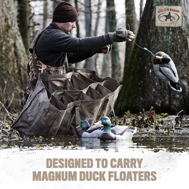 Rig'Em Right Waterfowl 12-Slot Floating Duck Decoy Bag with Padded Adjustable Shoulder Straps, Cushioned Side-Panels, Bottom Drains and more - Holds 12 Magnum Duck Floaters