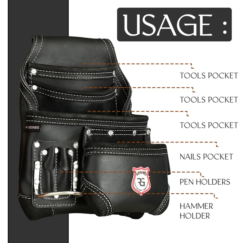 - ✅ VERSATILE & SPACE ] Rig Gears Leather Pouch All In One Versatile Maintenance Toolpro Use For Many Task. Excellent Spaces Available For Nail Pouch, Carpenter Tools, Roofing Tools You Get 4 Main Pocket X 3 Mini Pencils Pockets. It's A Partner You Can Trust On Every Job Everyday