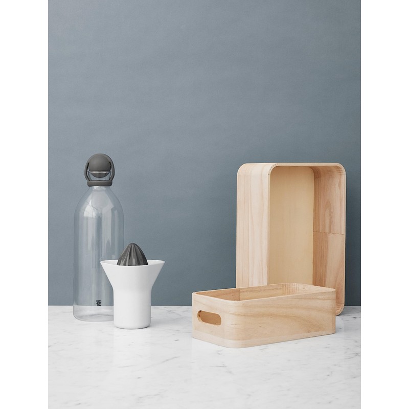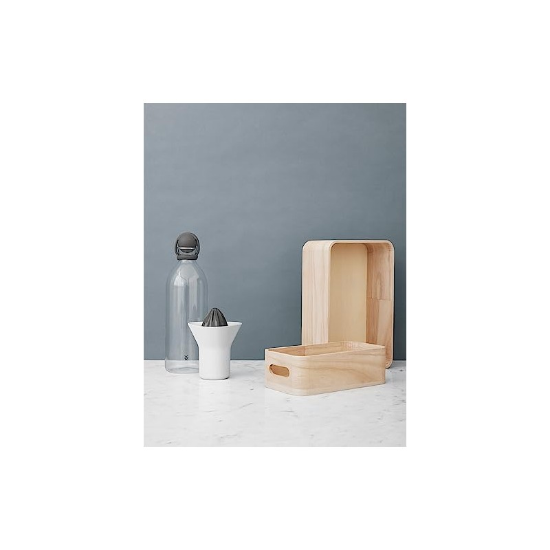- Drink with style – impress guests with your passion for modern home accessories. This water bottle is made of curved glass and is topped with a rubber ball closure.