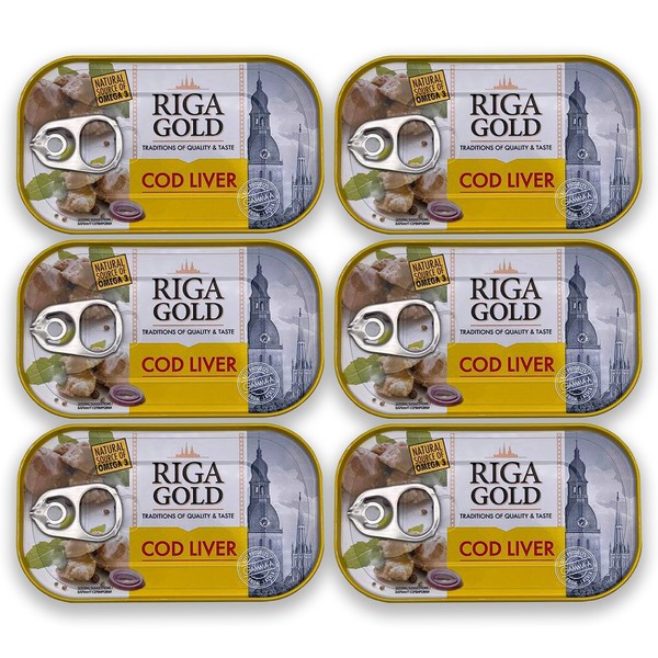 Riga Gold Cod Liver in Own Oil 4.27oz/ 121g From Iceland (Pack 6)