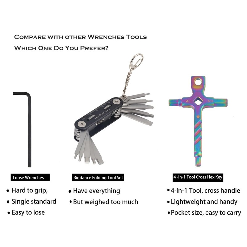 - 【Reduce Complexity to Simplicity】The commonly used standards is here in 1 key for photograghers. Don't have something you didn't need or have everything but weighed too much like other multitools. This lightweight 4 tool cross wrenches key is the way to go on a trail hiking. Handy tool for cameraman, pilot