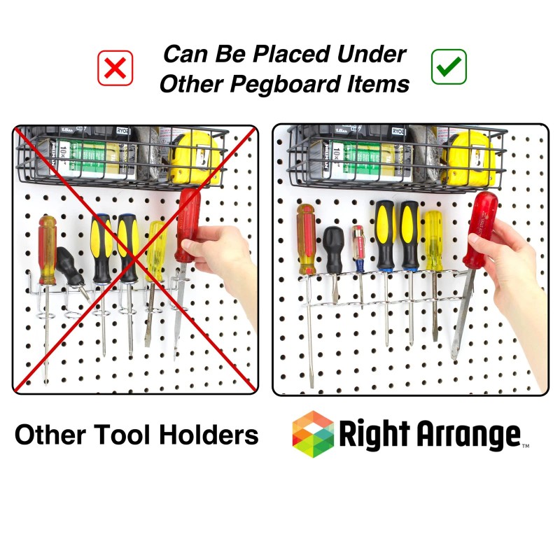 Right Arrange Pegboard Screwdriver Holder, 2-Pack - Hooks to Any Peg Board - Screwdriver an...