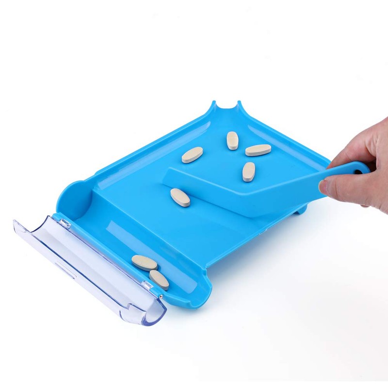 **Help you and your relatives better manage your medications** **How to use:** Pour the pills on the tray. Count the pills you need and move them in the lidded compartment with spatula. Pour the redundant pills back into their containers through the top right gap. Tilt the tray and let the pills which you have counted drop back in other vail or pill boxes. Wipe off the counting tray with a damp paper after counting each medication.