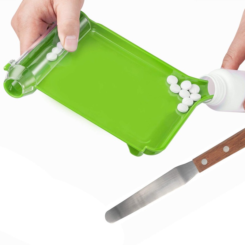 Dual Channel Design: Channel in lower left corner is for pouring the pills/tablets into daily pill box. Channel in top right corner is for pouring the rest pill back into original pill vial. Hands will not touch pills in whole counting process, making pill counting work more sanitary & efficient.✅