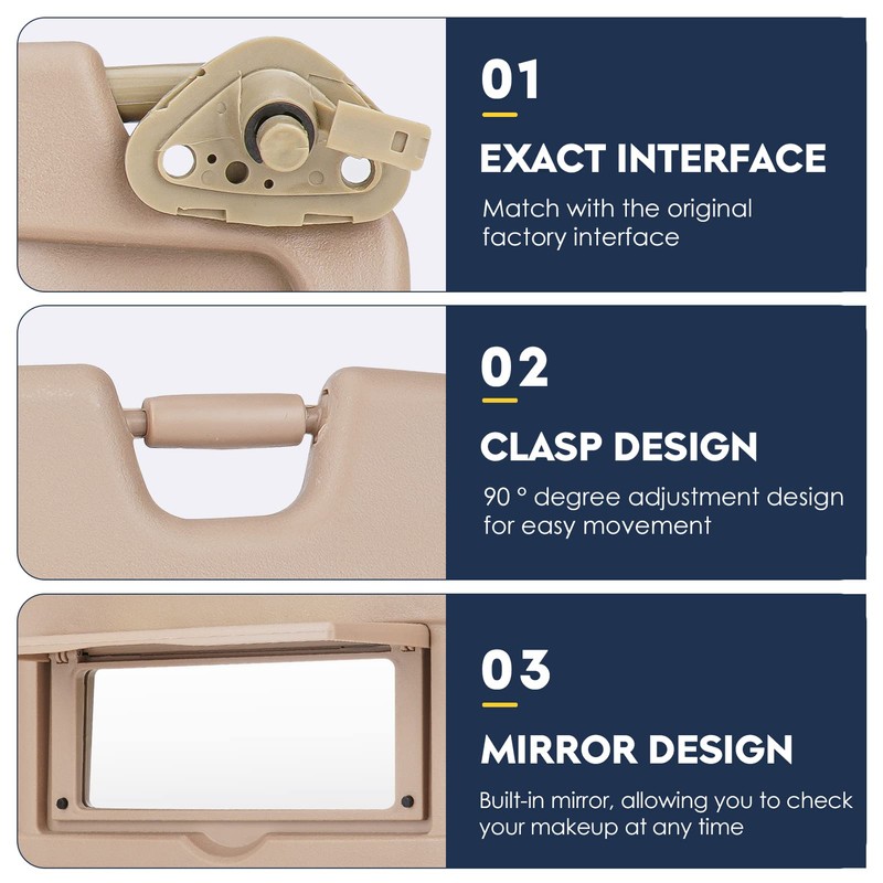 - Easy to Install: The sun visor has precise mounting holes and snaps to match the damaged visor on the car, just remove the bad one and attach the new one, screw the nuts and screws to complete the installation.