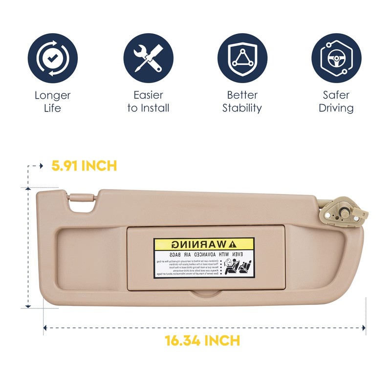 - Premium Material: The passenger side sun visor is made of high quality (ABS durable plastic), can withstand the sun for a long time, long lifespan, and it is the best replacement for your broken sun visor.