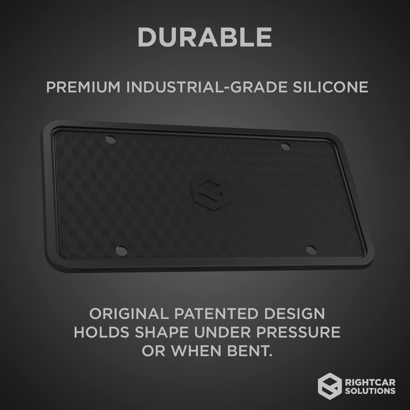 - ORIGINAL PATENTED DESIGN: Rightcar Solutions ensures the highest quality accessories for your car. Our unique and original proprietary design of silicone license plate frames for men and women offers flawless construction with even edges and surfaces. The perfect fit for any standard-issue plate.