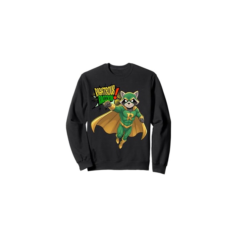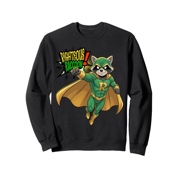 'Righteous Raccoon Superhero s Retro Comic Strip Sweatshirt