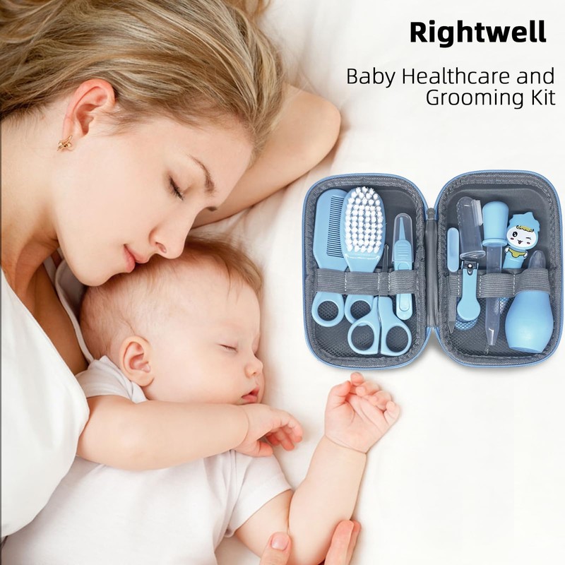 RIGHTWELL 10 in 1 Baby Healthcare and Grooming Kit, Baby Nail Kit with Waterproof Zipper Box, Infant Hair Brush, Toddler Comb, Nasal Aspirator, Nail Clippers, Baby Grooming Kit Newborn