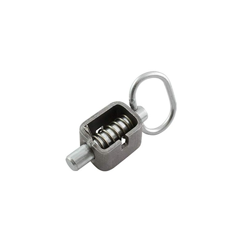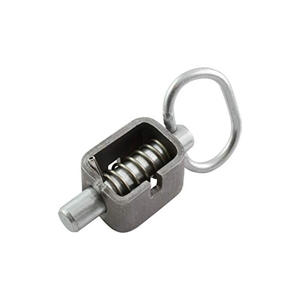 - Weld-on style heavy duty spring latch can be locked in the open position. A turn of the handle allows the 5/8" heat treated pin to close under spring pressure. Body is unfinished. Stainless steel spring and spring pin.
