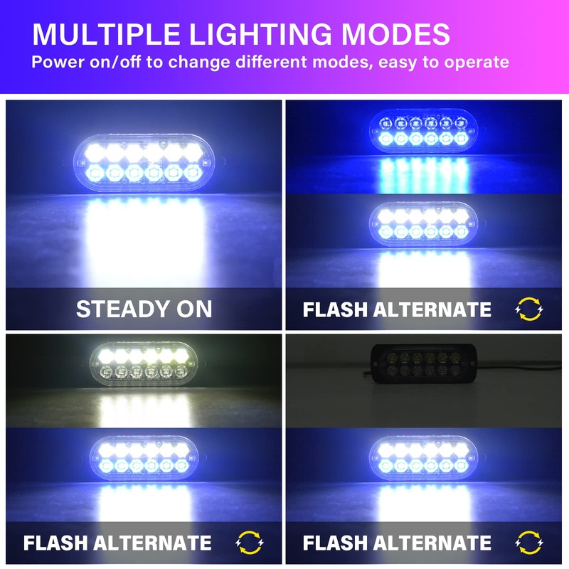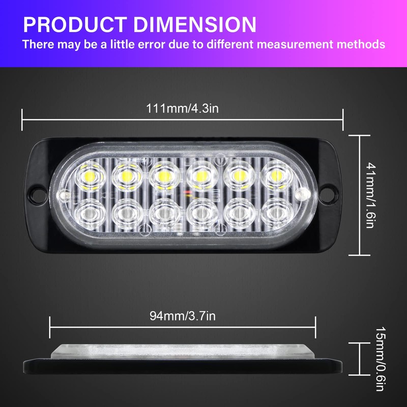 • 【Multifunctional】LED Frequent Lights are suitable for most vehicles with 12-24V power supply, such as trucks, SUVs, pickups, 4X4, ATVs, engineering vehicles, emergency vehicles, firefighters, construction vehicles, etc. Installed, installation In the front/rear bumper, side label, headlights, taillights, and fog lights.