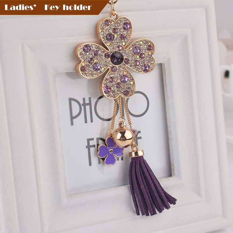 Rigral Bag Charm Key Ring, Quatsuba, Clover, Tassel, Keyring, Carabiner, red