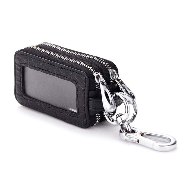 Rigral Men's Key Case, Smart Key Case, Genuine Leather, Double Zipper, Stylish, Black