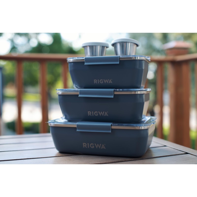 RIGWA REX TRIO SET - SLATE, Includes 26 oz, 36 oz, & 46 oz Insulated Lunch Boxes, 2 Dressing Containers