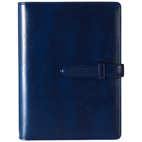RIHUA A5 Notebook Notebook 6 Hole Ring Notepad with Refill Schedule Book Card Storage Leather A5 System Notebook Cover Business Notebook Office Supplies (Blue)