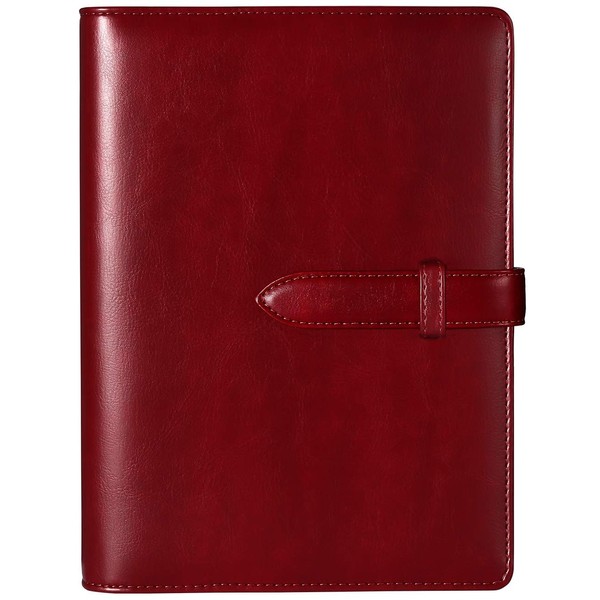 RIHUA A5 Notebook Notebook 6 Hole Ring Notepad with Refill Schedule Book Card Storage Leather A5 System Notebook Cover Business Notebook Office Supplies (Wine)