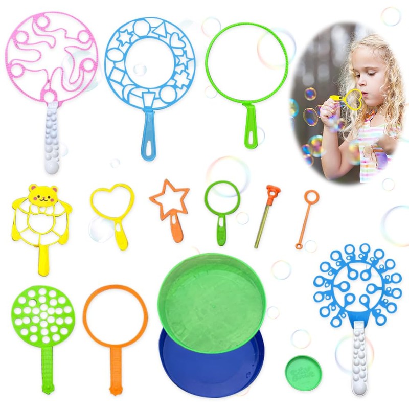 - 【Giant Bubble Set】As a large bubble stick set for summer, it has 3 bubble bowls and 12 bubble blowers. Take one of the bubble toys and simply brush the bubble solution on trays and blow. Make big and fun bubbles on different occasions.