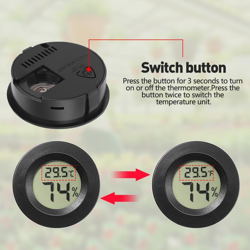 - Digital thermo-hygrometer: the mini thermo-hygrometer is suitable for reptile terrariums, wine cellars, cellars, warehouses, live greenhouses, aquaculture and more.