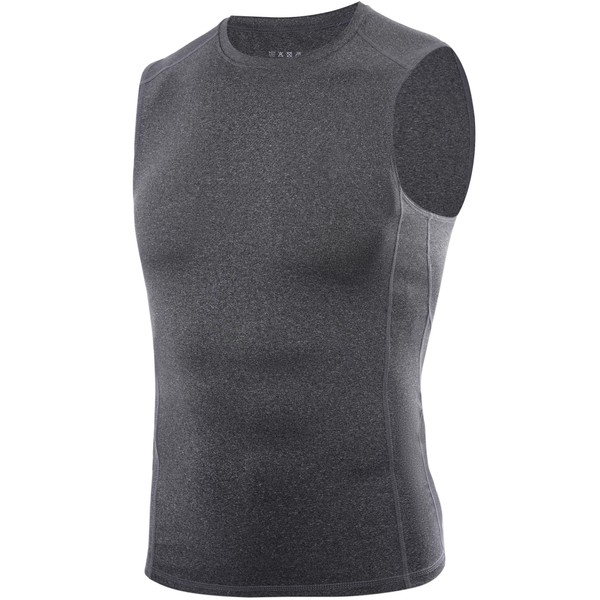 RIKUAOU Men's Compression Shirts, Sleeveless Athletic Tank Tops for Men, Gym Workout Undershirt Running Basketball Base Layer Dark Gray