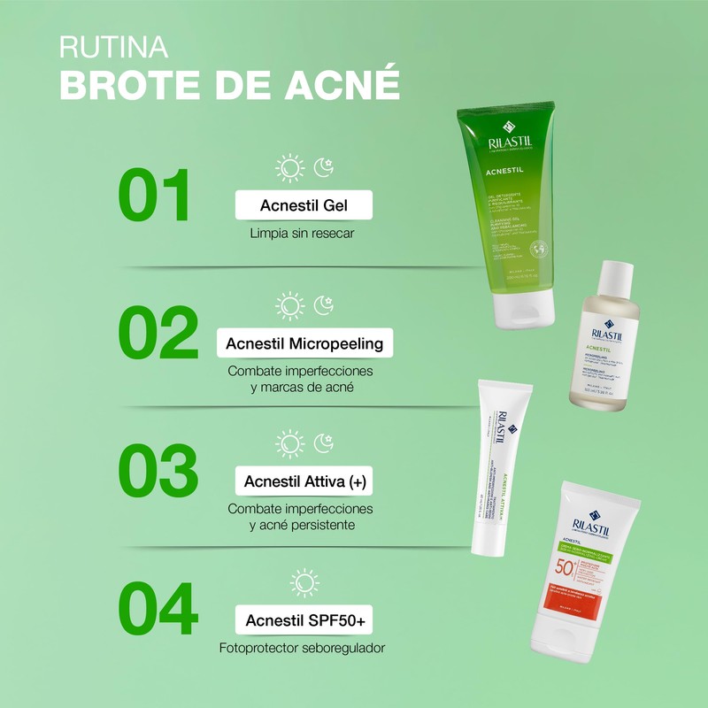 - ACNESTIL GEL: Es ist ein Reinigungsgel für das Gesicht, das für fettige und zu Akne neigende Haut geeignet ist. Die leichte, erfrischende Formel lässt sich leicht auf die Haut auftragen und hilft, die Poren tief zu reinigen und angesammelte Unreinheiten zu entfernen, ohne das Gesicht auszutrocknen oder zu reizen